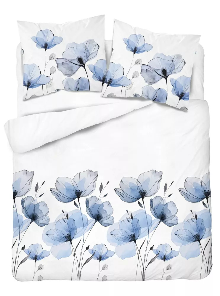 5496 A Biancheria da letto in cotone bianco con fiori blu acquerellati Naturalis- Detexpol