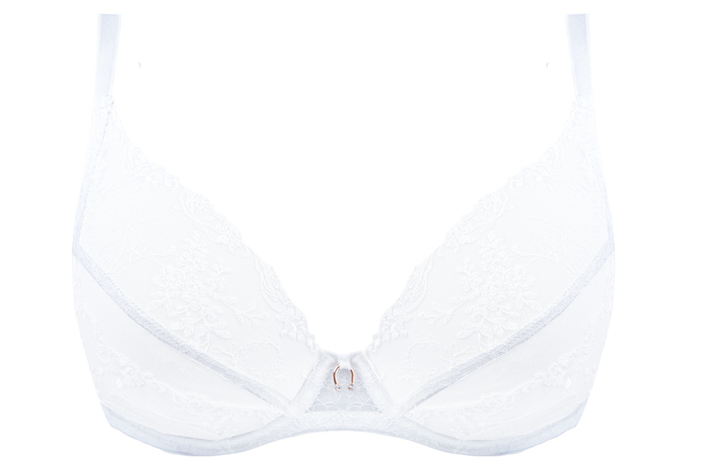 • Reggiseno RUBI SOFT bianco, coppe morbide, pizzo, confortevole, Unikat, taglio elegante.