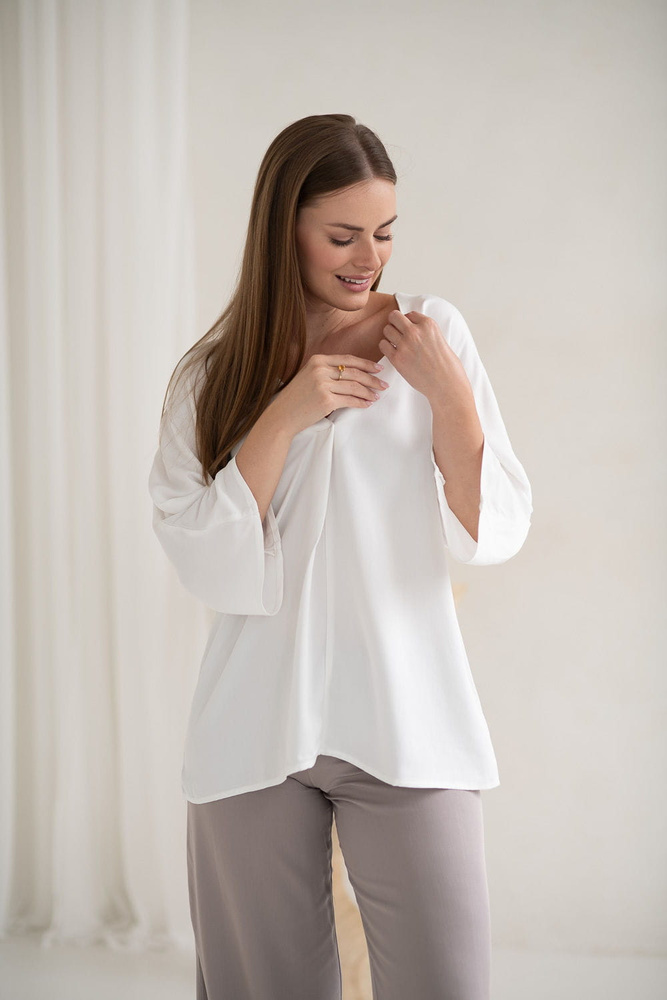 Mamafullness Camicetta maternità per l'allattamento Milk&Love bianco - viscosa, manica 3/4, oversize