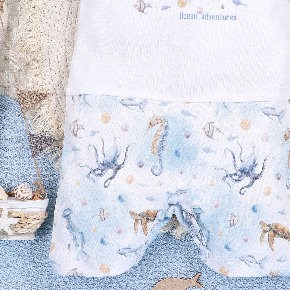 • Sea Of Joy Nini Rampers - 100% cotone organico, leggeri, con bottoni a pressione, comodi per le giornate calde.