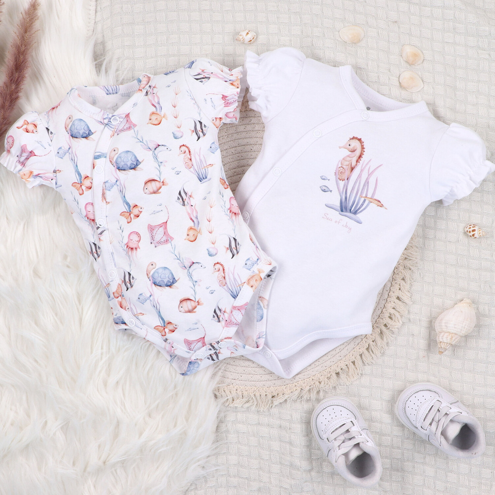 - Body Nini Underwater World - 100% cotone biologico, manica corta, stile busta, comodi bottoni a pressione.