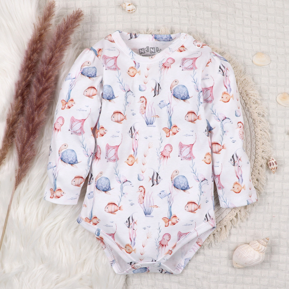 ABN-5475 Body per neonato Mondo sommerso in cotone biologico Nini, manica lunga
