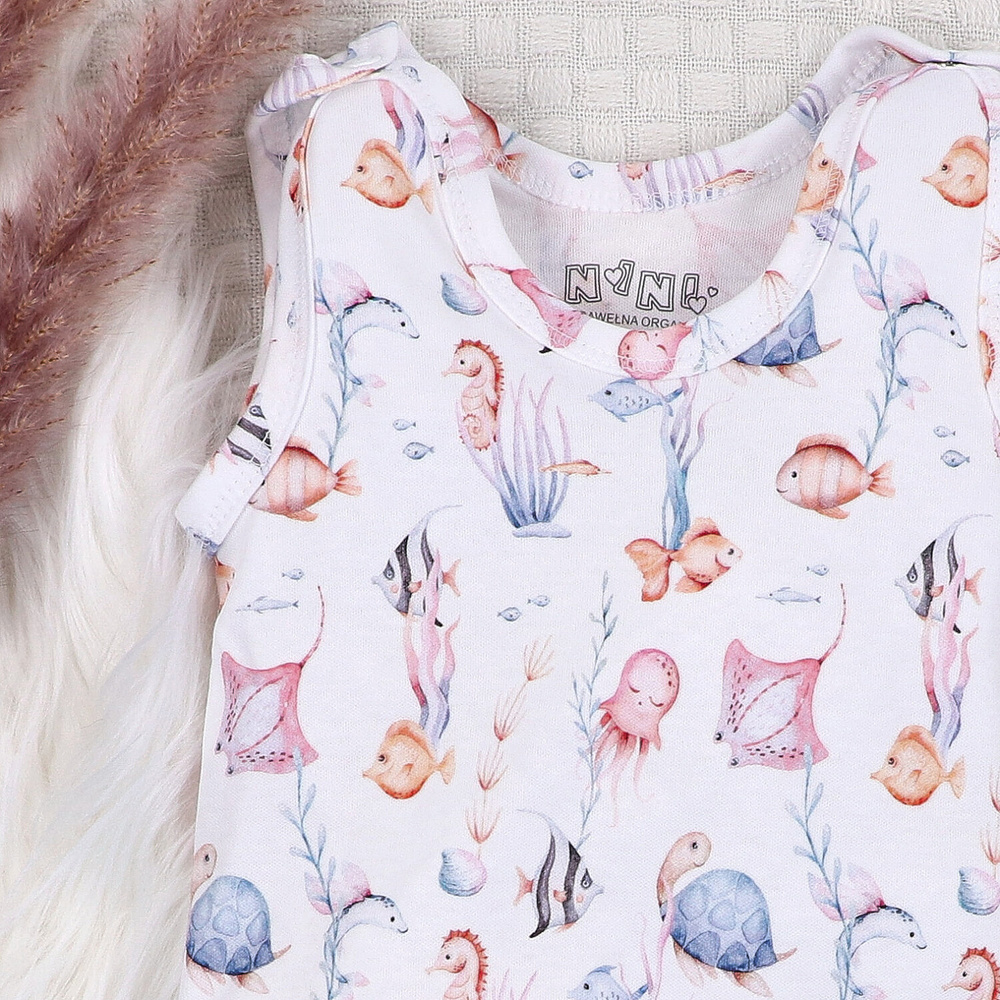 - Nini Underwater World sleepwear - 100% cotone organico, piedini incorporati, comodi bottoni a pressione.