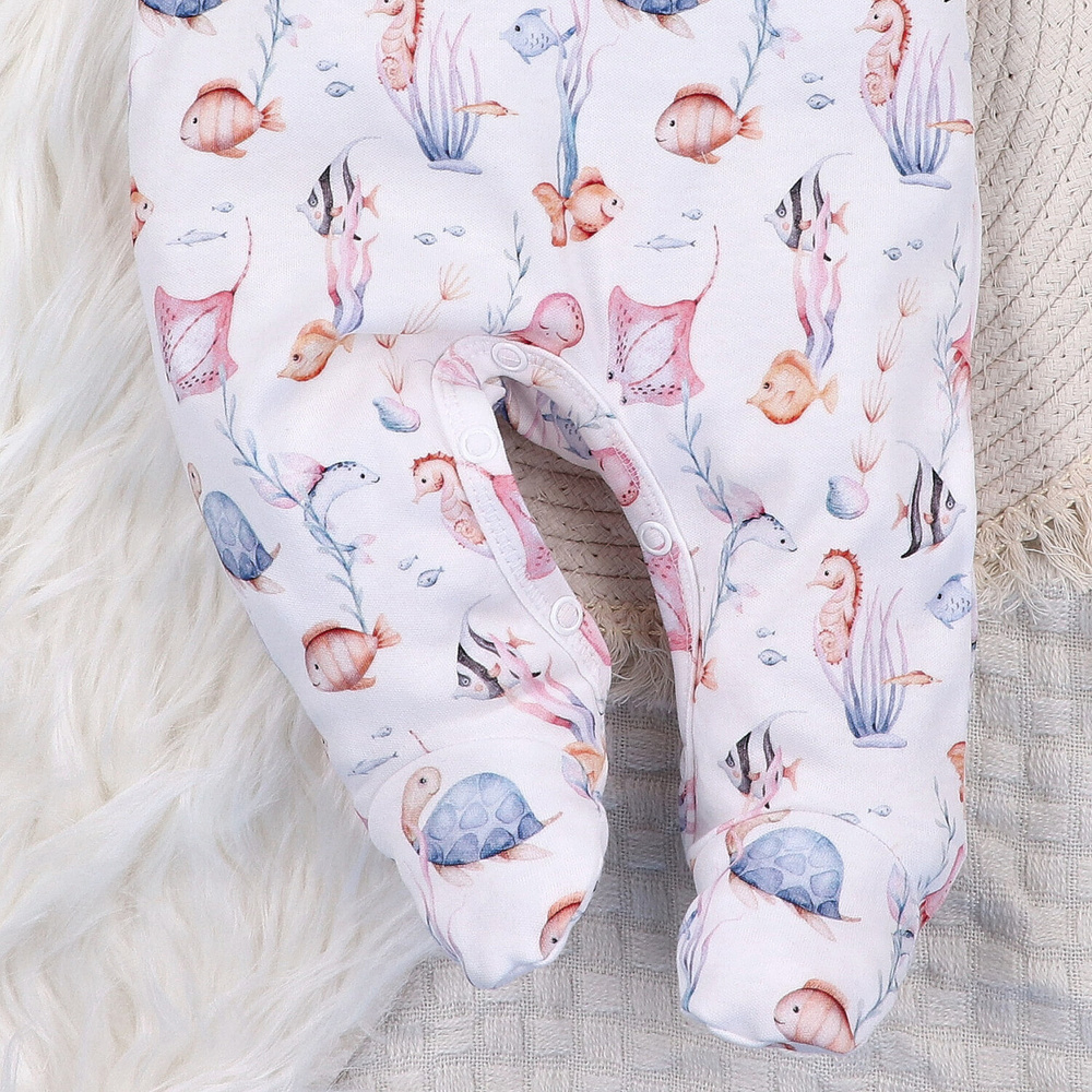 ABN-5480 Mondo sommerso Nini - pigiama per neonati in cotone biologico, piedini rivestiti