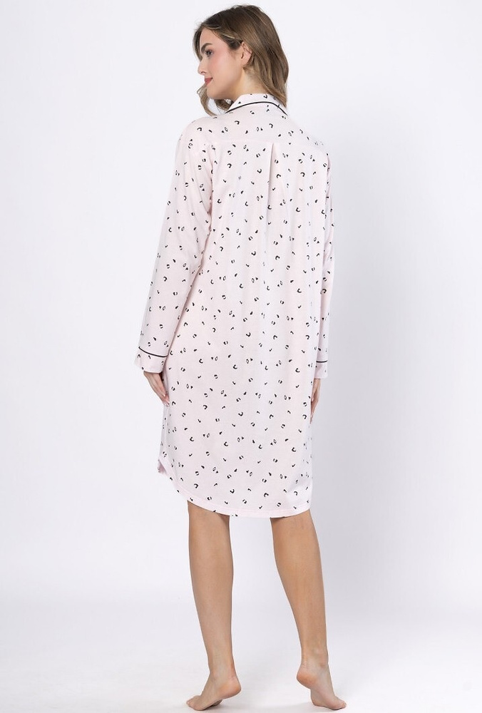 La camicia ha manica lunga, che lo rende ideale per le notti più fredde. Chiusura con bottoni conferisce all'insieme un tocco di eleganza ed è anche una soluzione pratica, ad esempio per le madri che allattano. Il taglio è rilassato senza essere restrittivo e i bordi delicati aggiungono sottigliezza e fascino femminile.