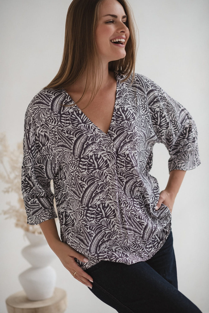 La blusa premaman Mamafullness di Milk&Love coniuga comfort e stile femminile. Realizzato in 100% viscosa ariosa, è perfetto per le giornate più calde. Taglio a kimono con ampie maniche a 3/4 per una totale libertà di movimento e comfort durante la gravidanza e l'allattamento. L'ingegnoso scollo a V consente un facile accesso al seno, mentre il taglio ampio e oversize si adatta perfettamente alla silhouette in evoluzione. Il sottile motivo floreale aggiunge leggerezza e fascino alla blusa. Un'opzione pratica per le mamme che apprezzano funzionalità e stile.