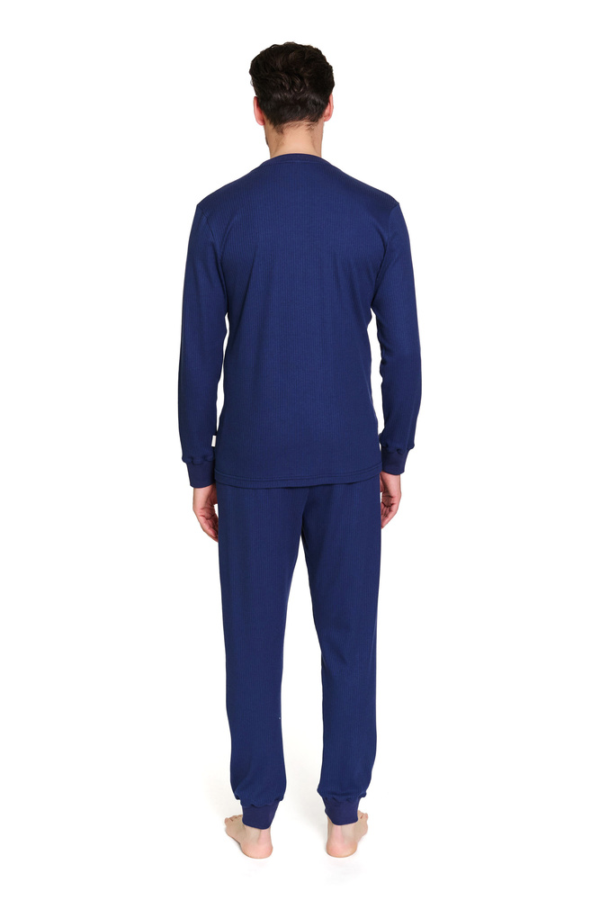 - Pigiama da uomo in cotone di alta qualità. Maniche lunghe, gambe a costine e taglio classico: ideale per le notti più fresche.