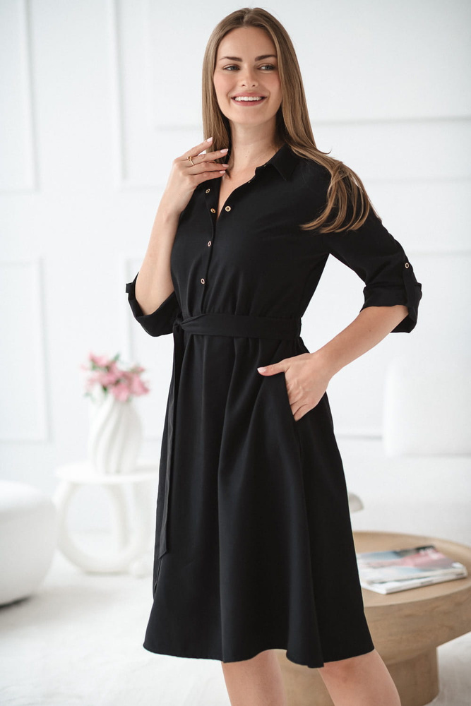 • Milk&Love chemise nera per la maternità e l'allattamento - morbido tessuto modal, bottoni a pressione per l'allattamento, cintura di regolazione in vita, maniche a 3/4.