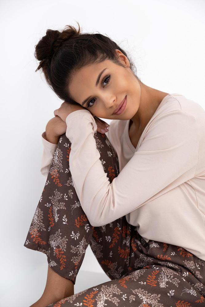 Pigiama da donna Shelby Sensis - viscosa, maglietta a maniche lunghe e pantaloni a fantasia
