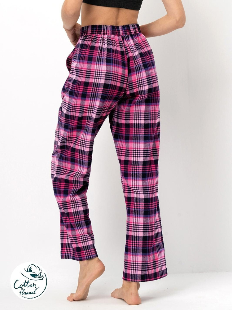 • Pantaloni da notte donna Key LHE 490 in flanella di cotone a quadri. Taglio comodo, tasche laterali, fascia elastica in vita e pinces decorative.