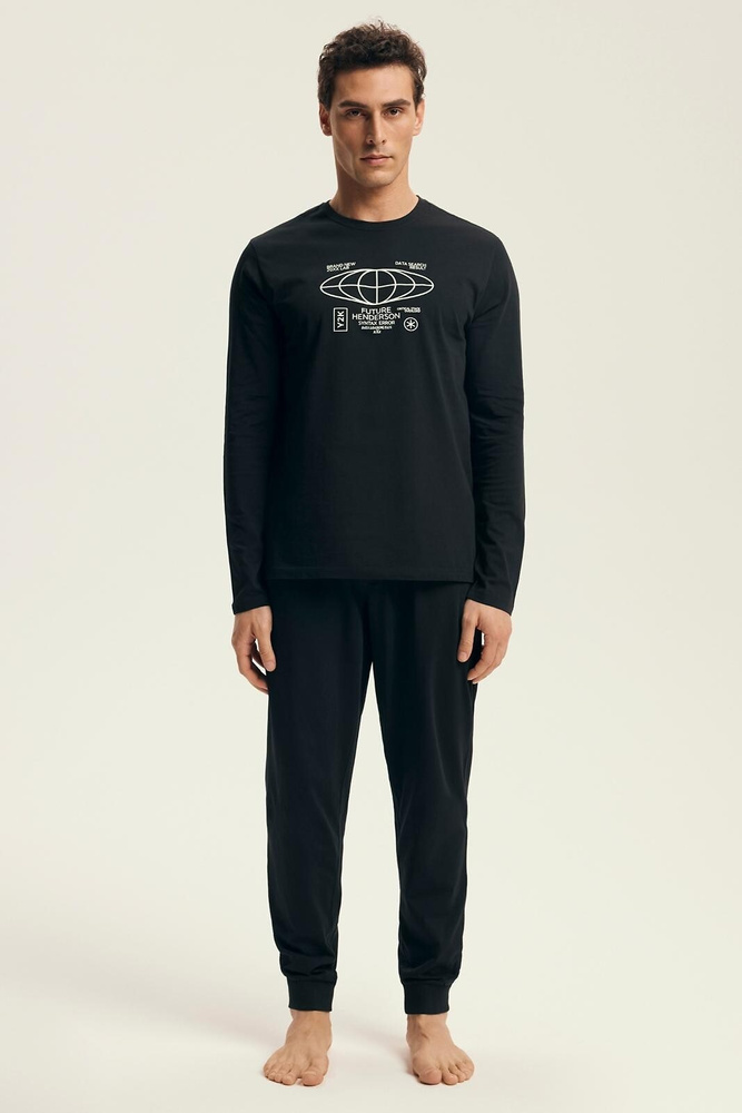 Henderson Core 43469 Pigiama da uomo Loger nero, cotone, manica lunga, confezione elegante