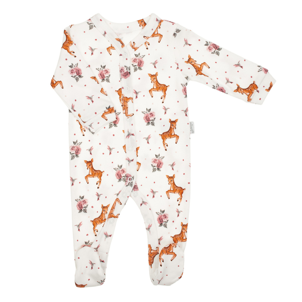 Decorato con una stampa femminile di caprioli, uccelli e rose, il modello appare eccezionalmente delicato e sottile. La vestibilità ampia assicura libertà di movimento, mentre il materiale naturale garantisce un'esperienza di gioco e di sonno confortevole. Questo pratico ed elegante capo d'abbigliamento per tutti i giorni.