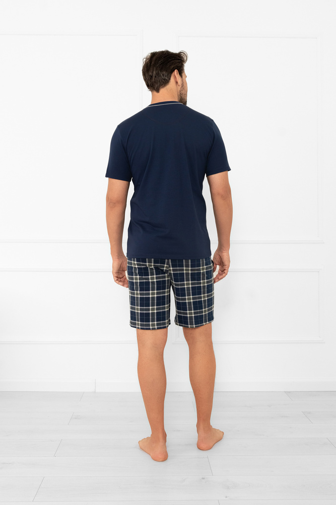 Pigiama uomo Andreas - manica corta, pantalone lungo, cotone Moda italiana - blu navy/stampa