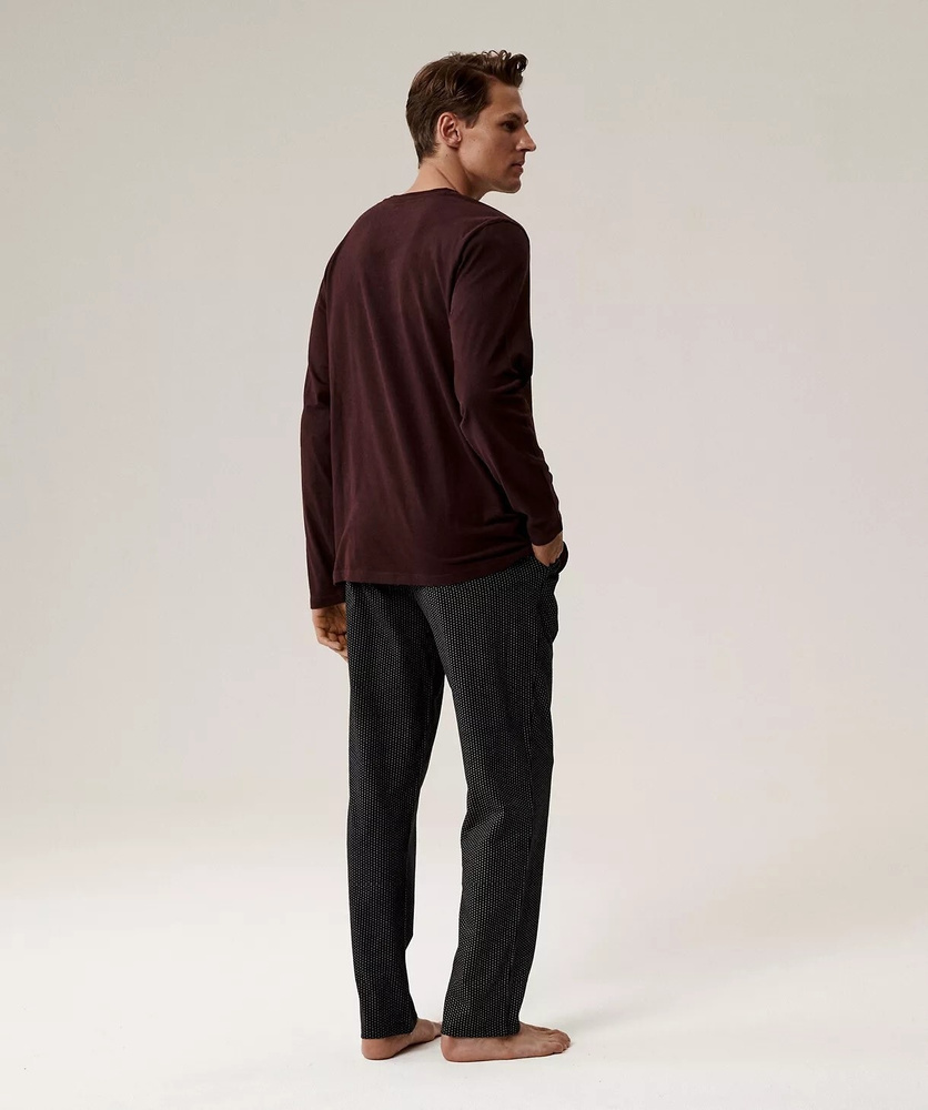Pigiama da uomo NMP-389 Atlantic - cotone color vino, manica lunga, set elegante per le notti fredde
