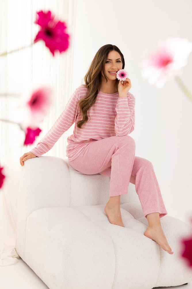 713 Pigiama da donna rosa Regina - spugna calda, righe, manica lunga