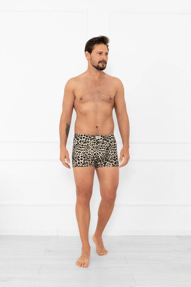 Il modello è decorato con una vistosa stampa leopardo, che conferisce alla lingerie un carattere predatorio e alla moda. Il taglio aderente assicura il comfort, mentre la coulisse elastica in vita, cucita nel tunnel, garantisce una vestibilità aderente e senza pressioni.