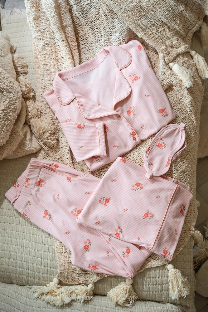 Il modello button-down conferisce un tocco classico al pigiama, mentre la sottile fantasia Rose Devotion ne sottolinea lo stile unico. I pigiami sono stati accuratamente confezionati per garantire un comfort totale e un aspetto attraente durante il relax domestico.