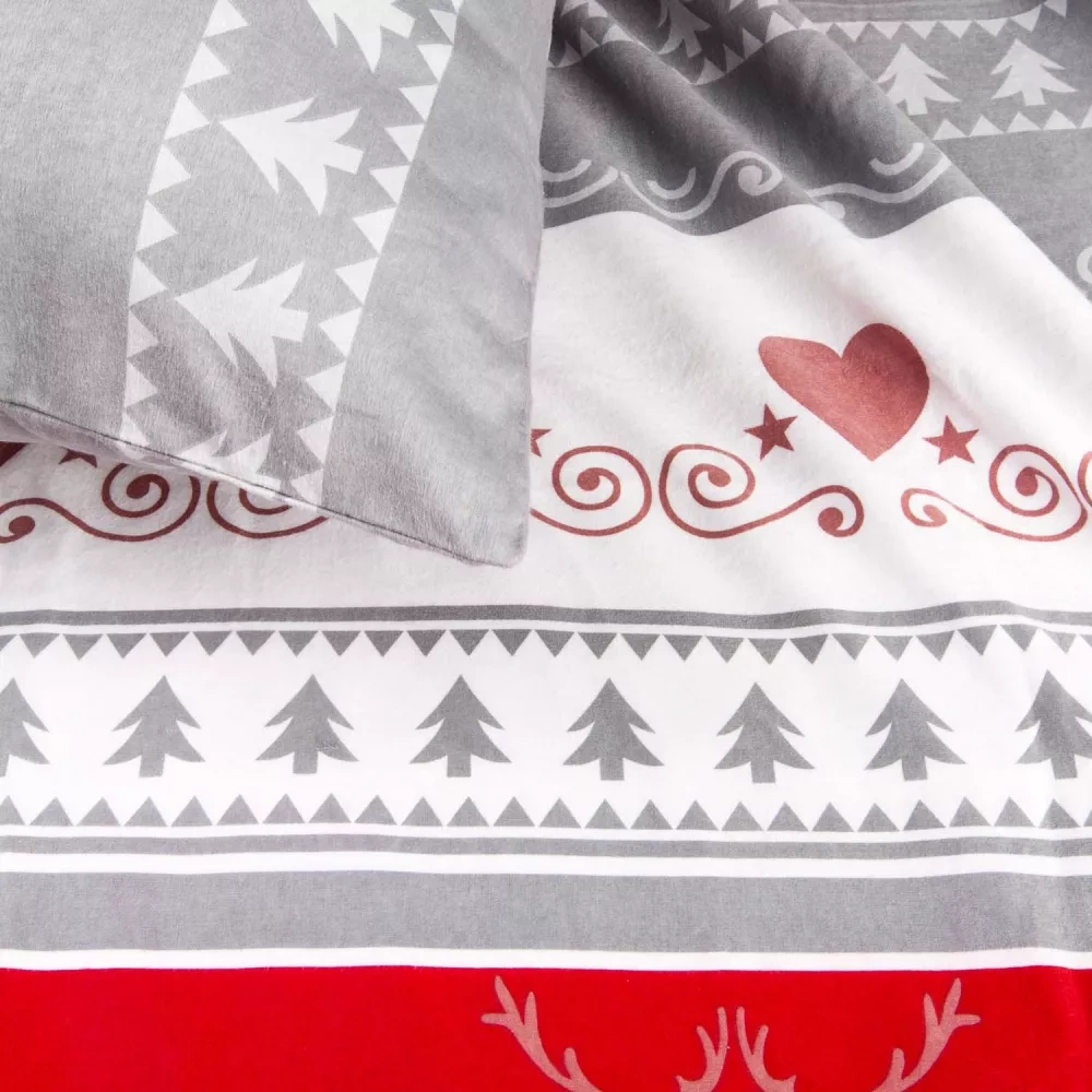 31516/1 Biancheria da letto natalizia in flanella Flanelove Darymex grigio rosso- set 100% cotone, caldo e morbido