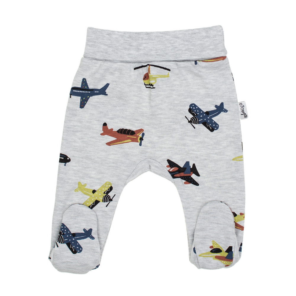 • Semidormitorio Nicol Willy in cotone grigio con stampa di aerei. Vita comoda, piedi coperti, taglie 56-68.