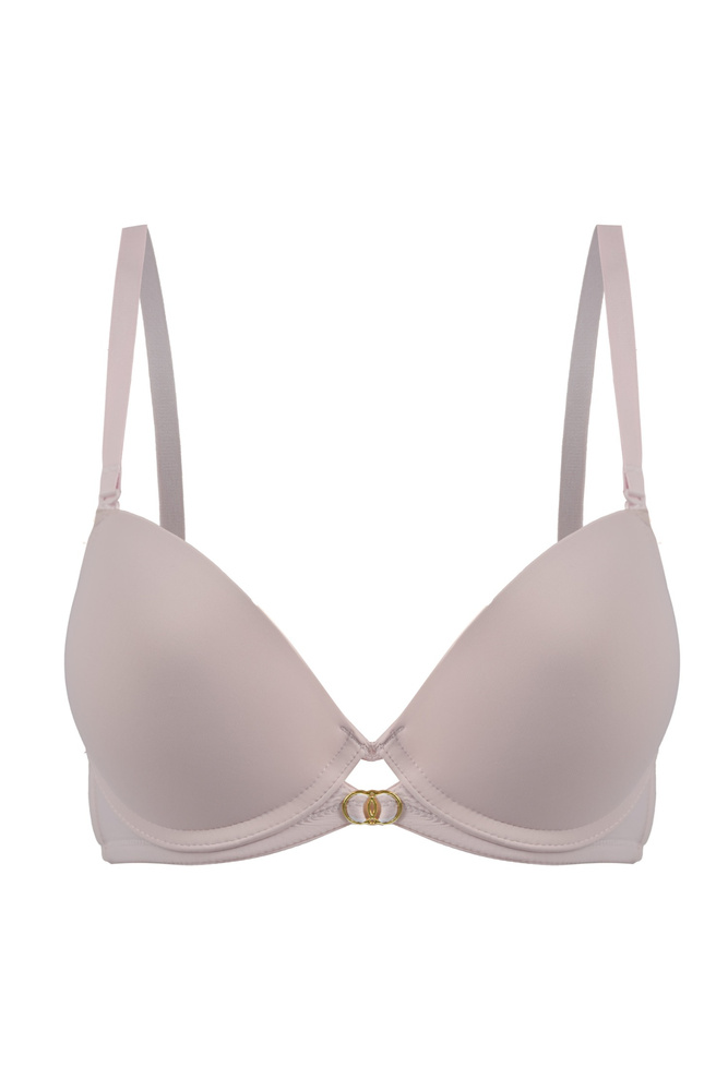 - Reggiseno Mediolano Nela 19241. Push-up in rosa cipria, liscio, con spalline regolabili e dettagli in oro.