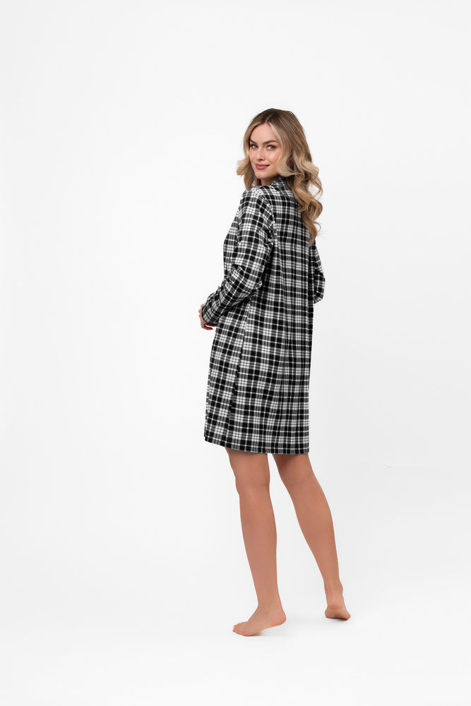 Camicia da notte da donna Klara - manica lunga, cotone, a quadri, sbottonata Moda italiana