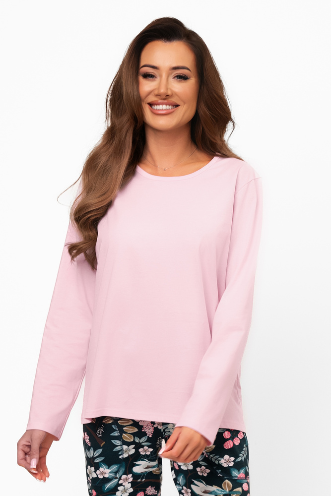La biancheria da notte Marisal è un set comodo e pratico, cucito in cotone naturale certificato. La blusa a maniche lunghe con scollo rotondo ha una vestibilità dritta e ampia e una struttura liscia senza stampe. Il colore chiaro conferisce leggerezza e lo rende perfetto non solo per dormire, ma anche per il relax in casa. I pantaloni sono in contrasto di colore e un sottile motivo floreale della stessa tonalità si riferisce al top, creando un insieme coeso. La morbida fascia elastica in vita, le tasche laterali e le gambe leggermente affusolate garantiscono il massimo comfort di utilizzo. Questo è un pigiama che va bene sia per la notte che per il giorno, ogni volta che volete sentirvi a vostro agio.