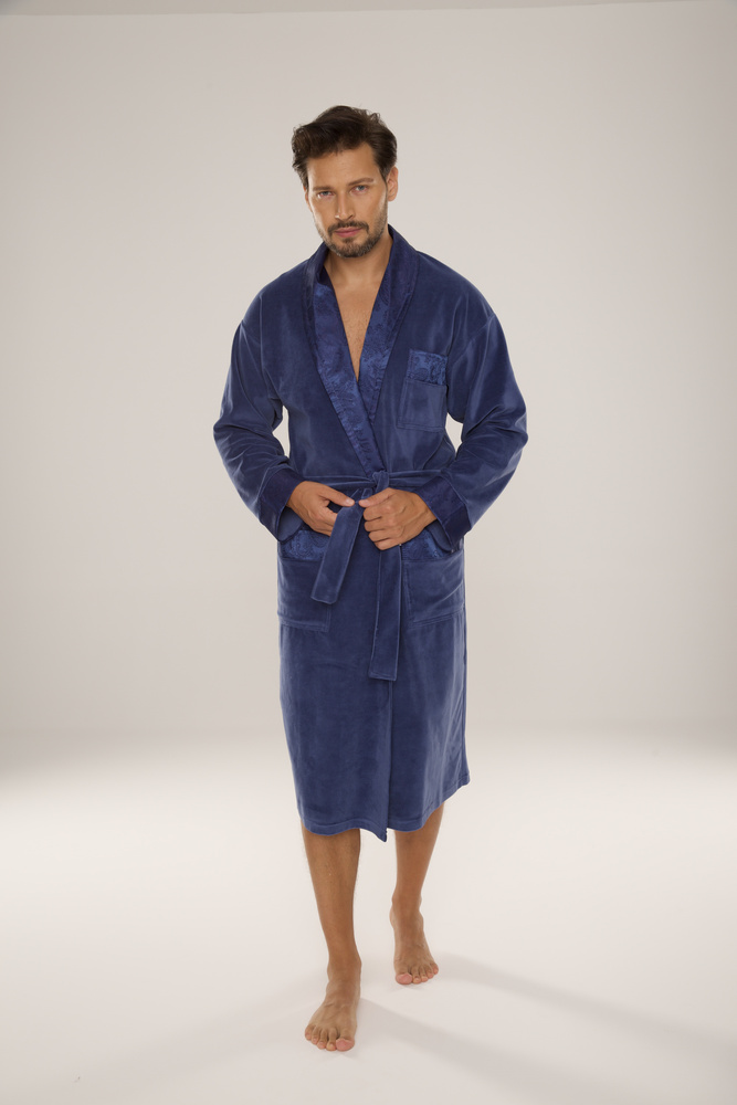 868 Nobile accappatoio da uomo in velluto De Lafense - elegante, morbido, pregiato, denim