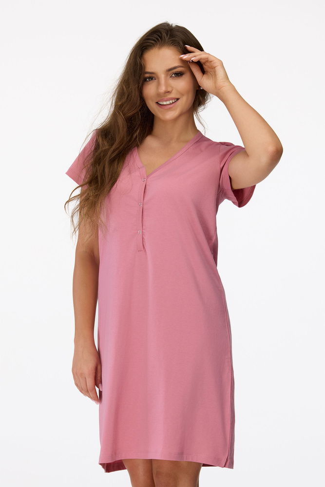 no. 20 Camicia da notte per la gravidanza Senizo rosa antico - 100% cotone, manica corta, allattamento con bottone