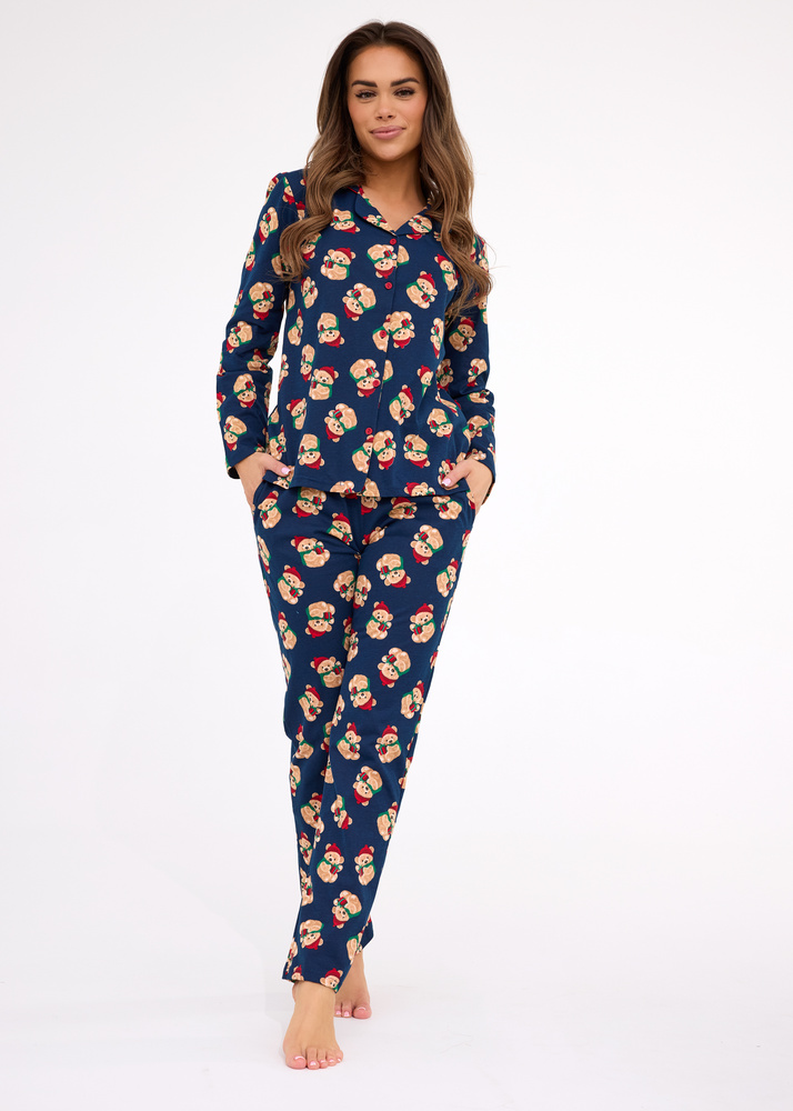 • Pigiama da donna Cornette Teddy 5 482/459. 100% cotone, blu navy, camicia con bottoni, pantaloni lunghi, confezione regalo.