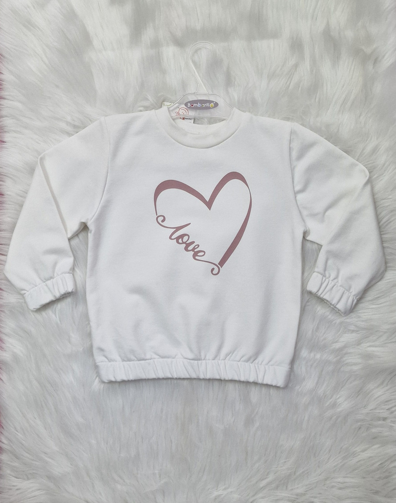 Felpa Love Heart Bambarillo ecrù - maglia felpata, cotone ed elastan
