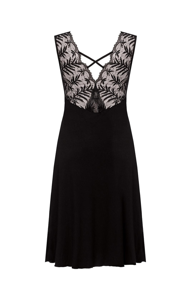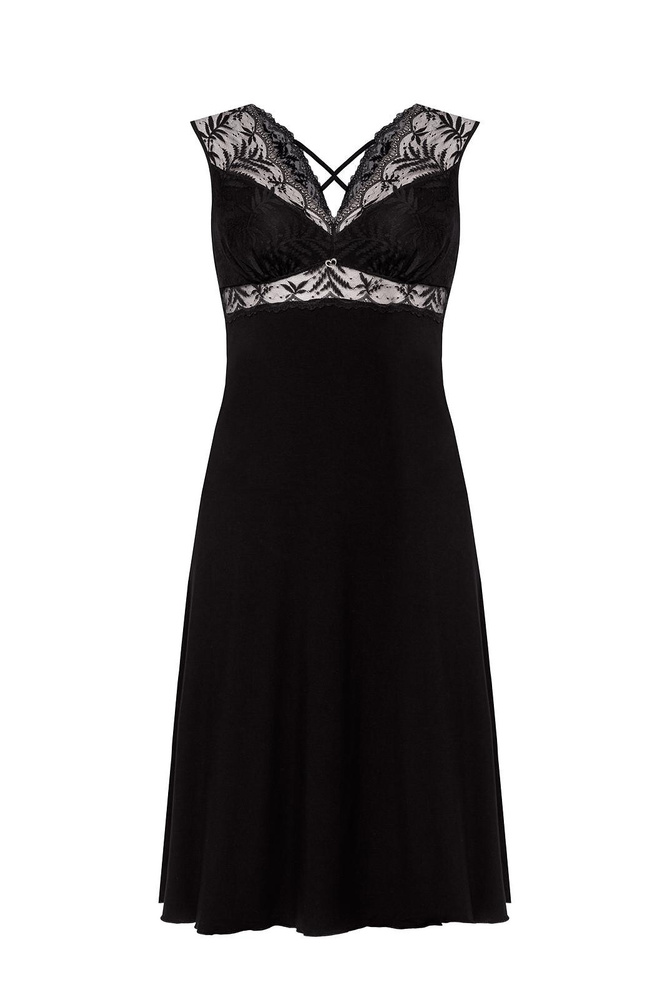 Camicia da notte Petra KM29 Mefemi by Nipplex nero- viscosa, pizzo, lunghezza al polpaccio