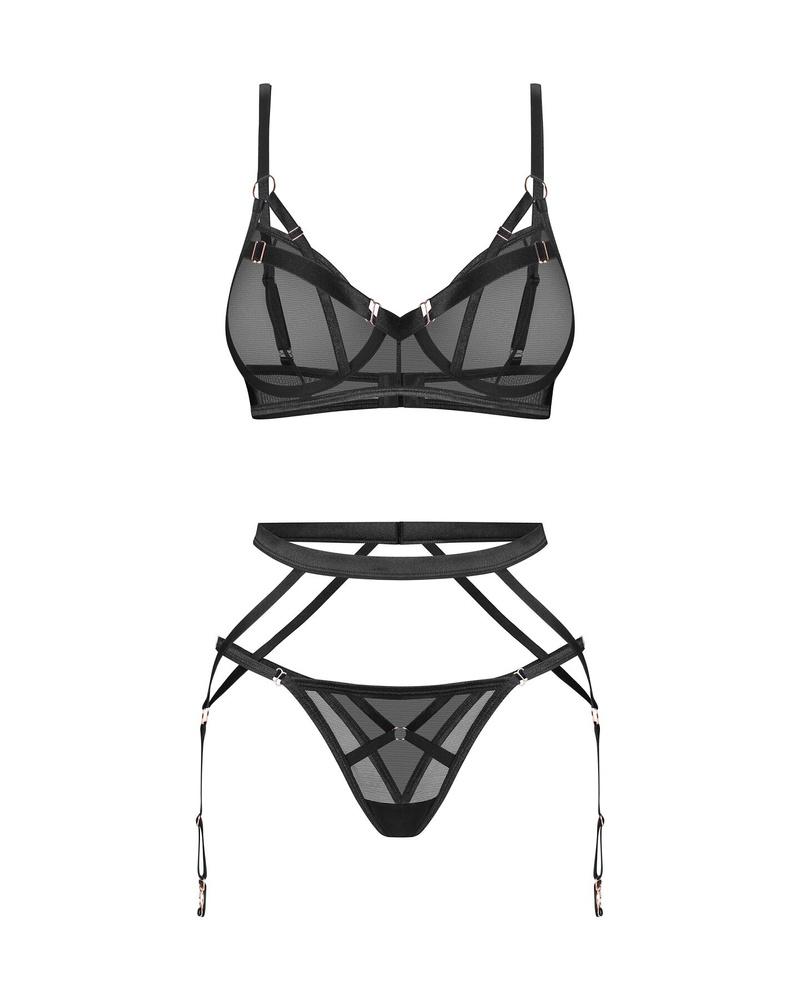 - Obsessive Euridia 3 pezzi. Reggiseno con ferretto, perizoma e reggicalze. Cinghie regolabili, chiusura a più fasi, elegante minimalismo.