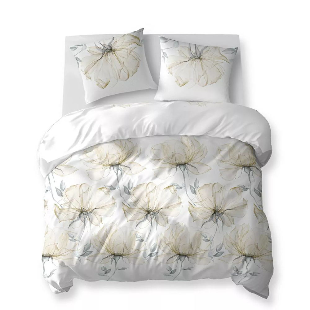 5770 B Cotton Bloom Detexpol biancheria da letto bianca con grandi fiori color crema - 100% cotone, reversibile, produzione polacca