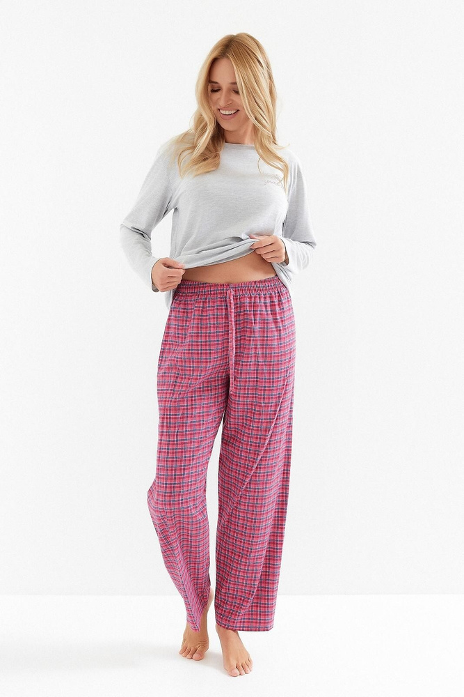 - Pigiama Taro Madlen 3512. T-shirt a maniche lunghe in cotone, stampata, pantaloni a quadri con elastico e laccetto.