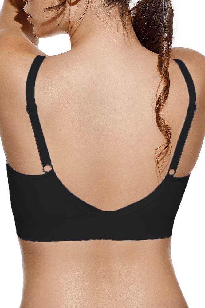 Il design senza ferretti garantisce un sostegno naturale del seno senza pressioni e uno speciale sistema di fissaggio consente di sganciare rapidamente le coppe con una sola mano, rendendo l'allattamento comodo e discreto.