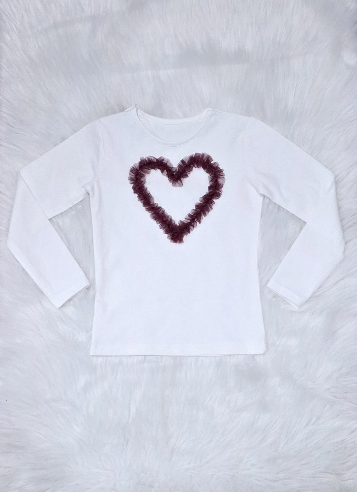 Mia Bambarillo camicetta da bambina in cotone ecrù bordeaux con cuore in tulle
