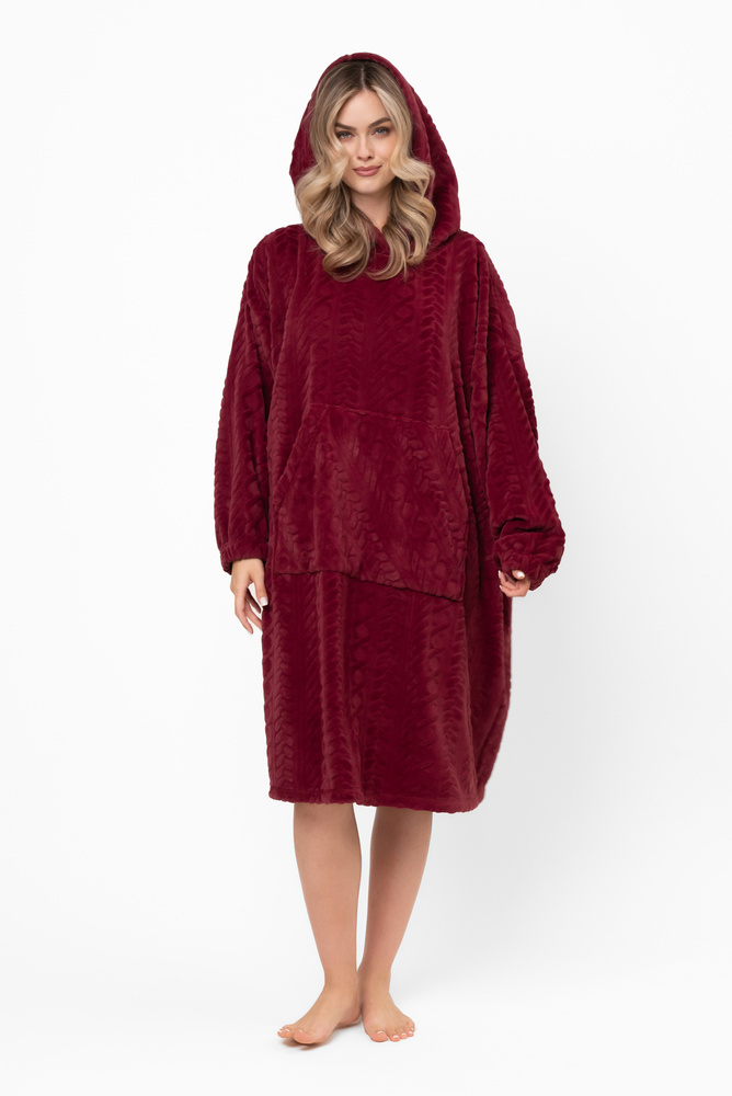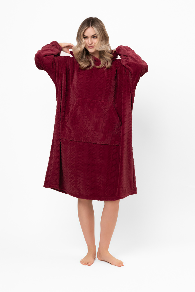 Reno Kocobluza Italian Fashion bordeaux - oversize, morbido bipolare, unisex, con cappuccio
