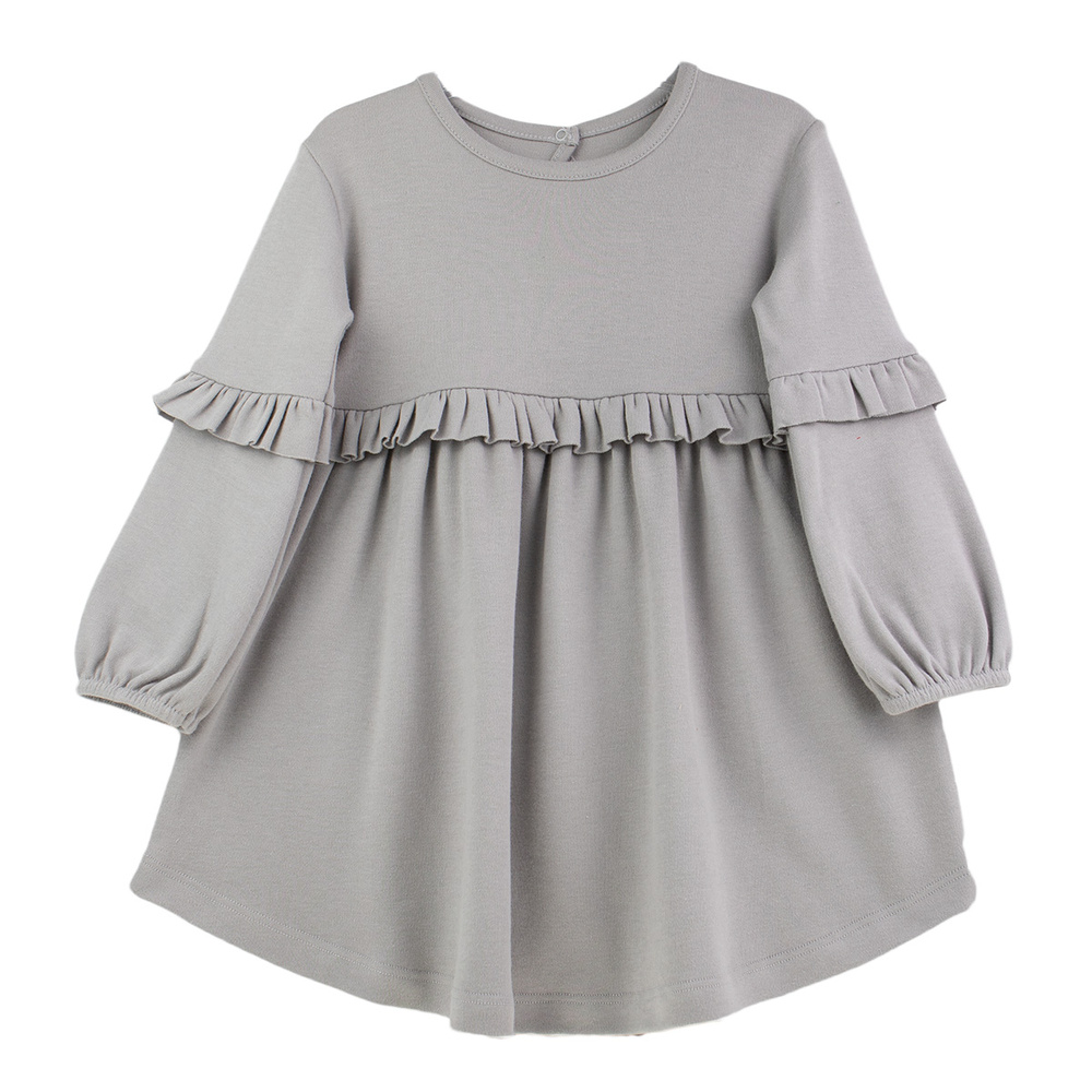 141971 Abito Nicol a maniche lunghe - grigio, in cotone, con balze