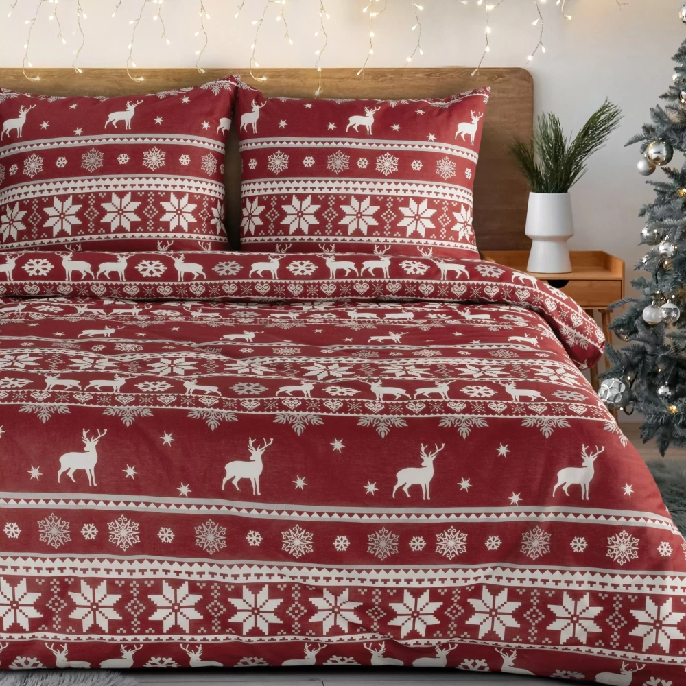Biancheria da letto natalizia Oslo Eurofirany rosso - cotone ranforce, reversibile