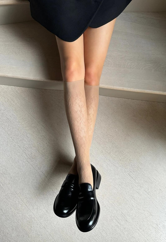Calzettoni di marca Bellarosa Veneziana è la combinazione perfetta di eleganza discreta, comfort di utilizzo e design moderno. Realizzati in morbida maglia traforata con un delicato motivo floreale, sottolineano splendidamente le gambe, aggiungendo leggerezza e un tocco femminile allo stile. È la scelta perfetta per le donne che desiderano un look elegante, ma che apprezzano il comfort per tutto il giorno.