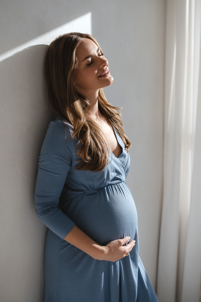 La camicia si adatta facilmente alla pancia che cresce e continua a stare bene su qualsiasi figura dopo il parto. La lunghezza offre comfort e senso di libertà quando si cammina per il reparto.