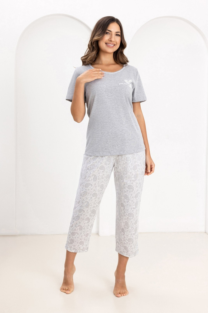 Pigiama da donna Regina 729 in cotone, maniche corte, pantaloni 7/8 grigio melange