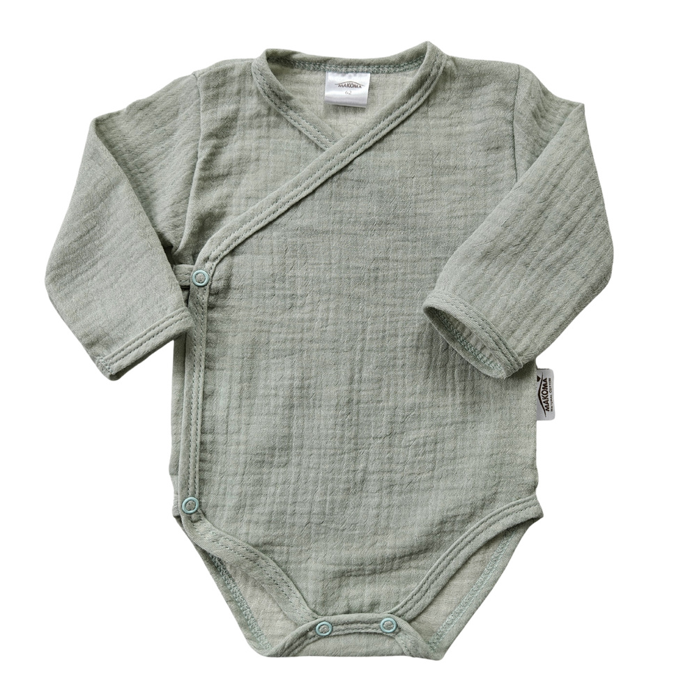 Body in mussola Just Muslin 03235M Makoma menta - manica lunga, chiusura a busta, 100% cotone