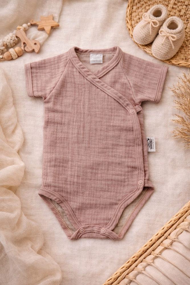 Body in mussola Just Muslin 03235KR Makoma rose- manica corta, busta, 100% cotone