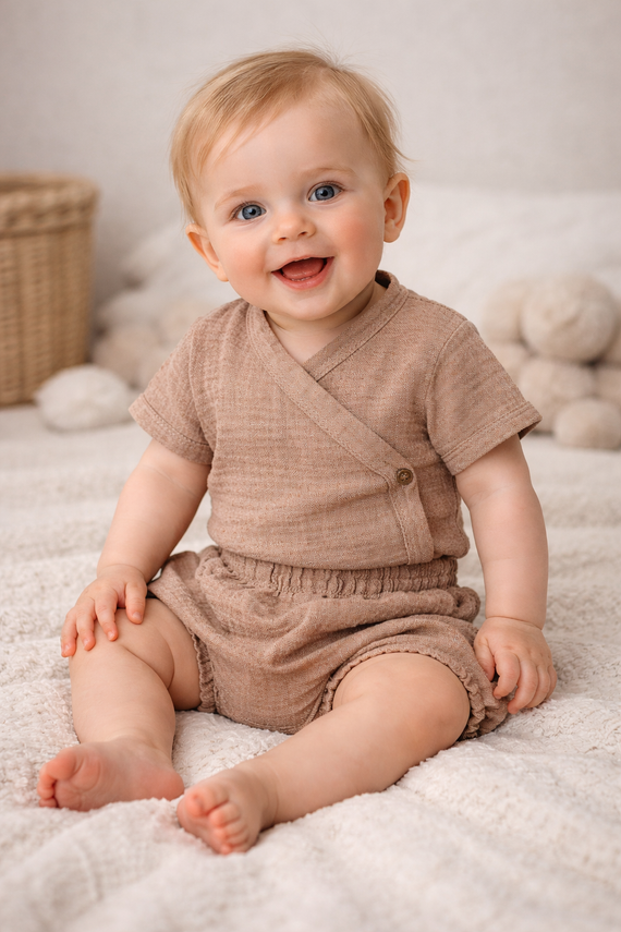 Se state cercando body leggero per neonati per la primavera e l'estate, che sarà delicato sulla pelle, pratico per l'uso quotidiano e confortevole fin dai primi giorni di vita, body in mussola Makoma con maniche corte e chiusura a busta è un'ottima scelta. Questo modello è particolarmente indicato se si desiderano materiali naturali e un modo rapido e senza stress di vestire il bambino.