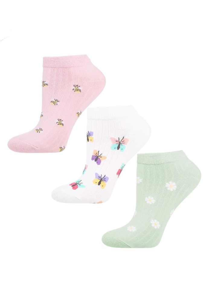 I motivi delicati e femminili aggiungono un tocco discreto ai piedi. Le varianti di colore disponibili sono: rosa con motivo ape, bianco con farfalla o verde con camomilla - la scelta del disegno è casuale. È una scelta pratica per le donne che apprezzano il comfort, i tessuti naturali e i dettagli raffinati che rendono più piacevole lo stile quotidiano.