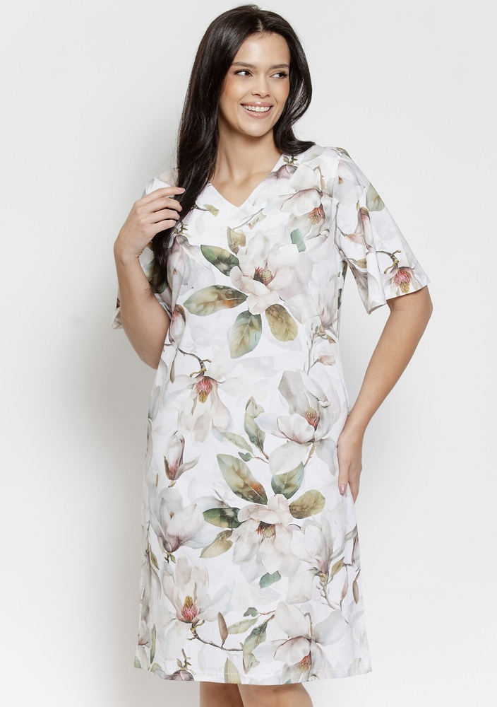 Camicia da notte Afrodyta 3566 Taro – cotone, magnolia, stampa botanica