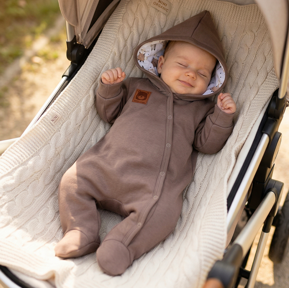 La tutina è realizzata in 100% cotone biologico, prodotto senza fertilizzanti artificiali né sostanze chimiche. Il tessuto è morbido, traspirante e anallergico, ideale per la pelle delicata dei neonati. L’imbottitura in ovatta siliconica assicura un isolamento leggero e uniforme, senza appesantire il capo. Anche dopo numerosi lavaggi, il materiale mantiene forma e colore, caratteristica essenziale per un utilizzo quotidiano.