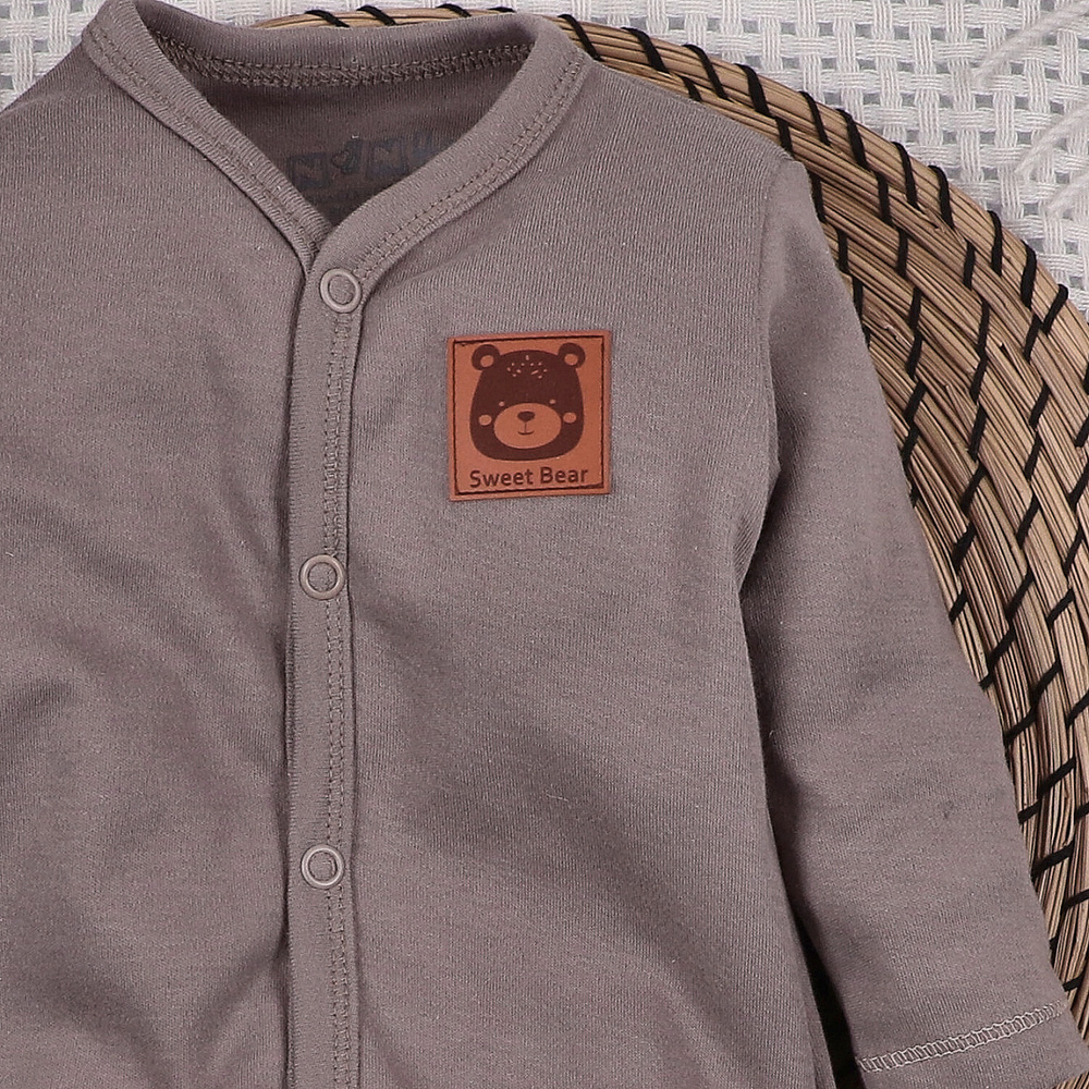 L’apertura lungo tutta la lunghezza facilita il cambio e la vestizione, soprattutto nei primi giorni, quando ogni gesto deve essere semplice e veloce. I bottoni automatici sono senza nichel, sicuri per la salute e adatti anche alle pelli più sensibili. Il taglio è studiato per garantire una vestibilità confortevole senza comprimere il pancino e per offrire libertà di movimento durante il sonno e i momenti di attività.