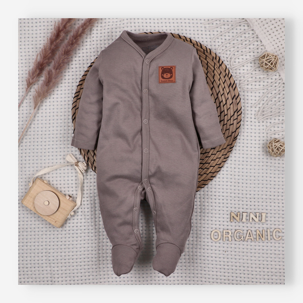 La tutina è realizzata in 100% cotone biologico, cucita con tessuto di produzione polacca. Il cotone biologico è coltivato senza sostanze chimiche nocive, risultando traspirante, morbido e naturalmente anallergico. Il tessuto mantiene forma e colore anche dopo numerosi lavaggi, non si deforma e non perde elasticità, caratteristica fondamentale per l’abbigliamento quotidiano del neonato.